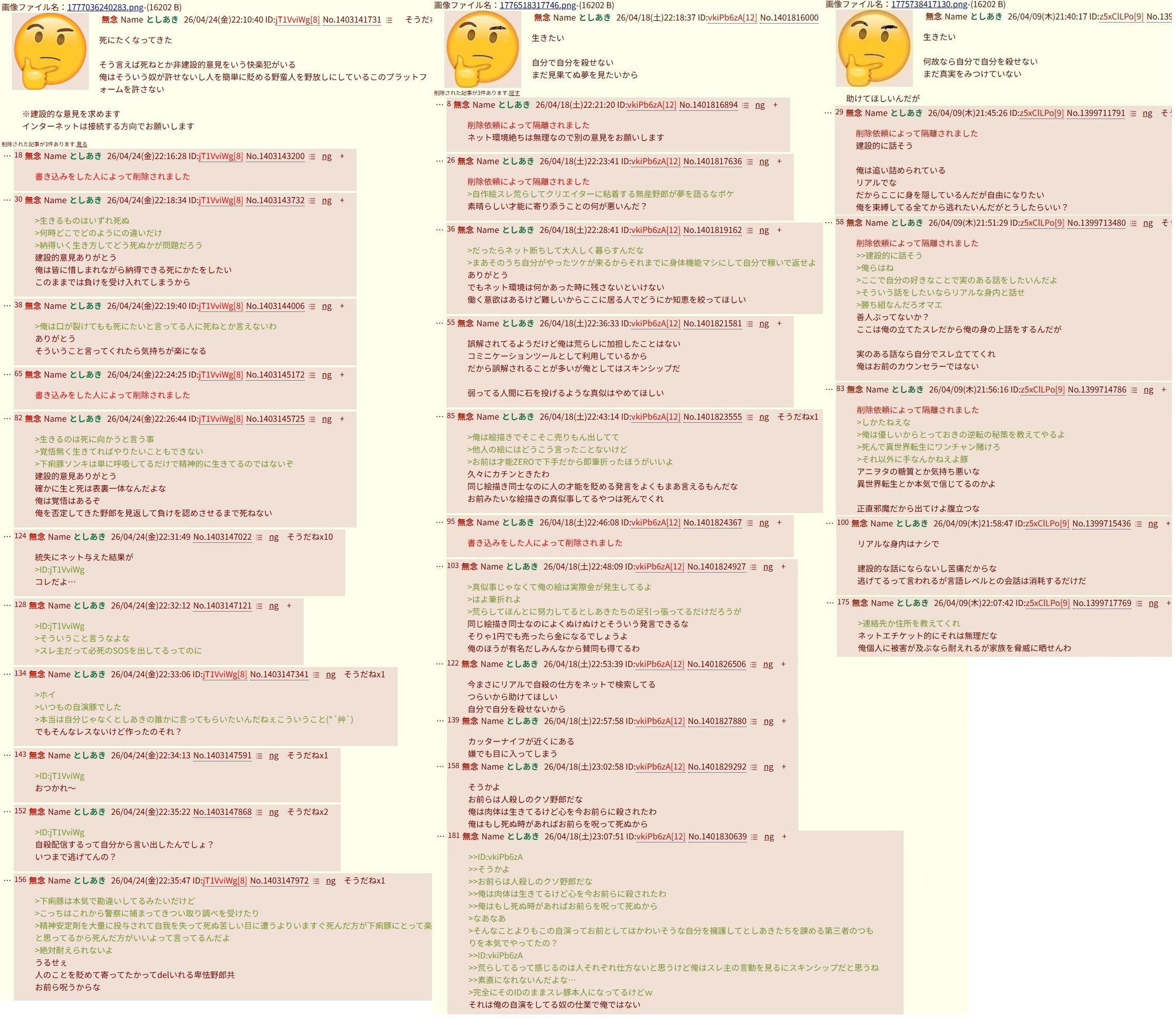 | … | 319無念Nameとしあき26/04/25(土)19:23:03No.1403341632そうだねx3>ふたばの荒らしなどではない! |