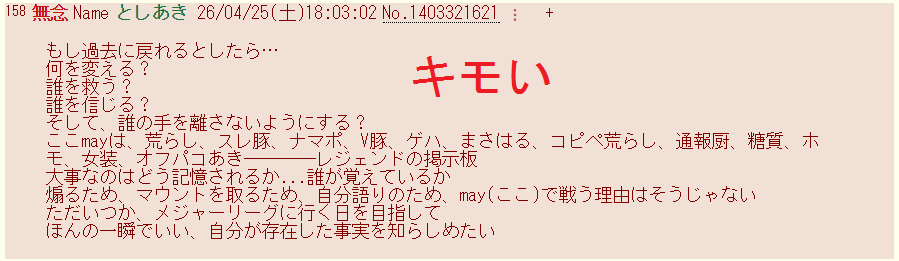 | … | 363無念Nameとしあき26/04/25(土)19:44:31No.1403347767+>もういいようねの話は |