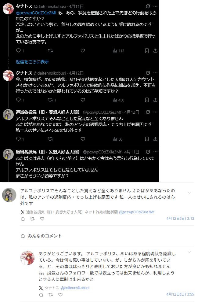 | … | 386無念Nameとしあき26/04/25(土)20:14:33No.1403356441+>(タナトスのやりとり知らんのかあのバカ) |