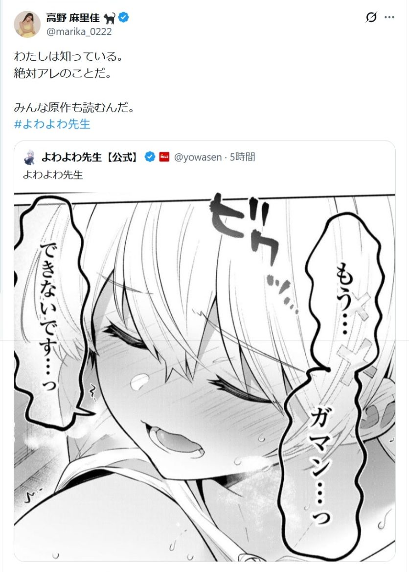 | … | 10無念Nameとしあき26/04/25(土)18:29:06No.1403327954そうだねx2よわよわ先生の原作はおにまいってこと? |