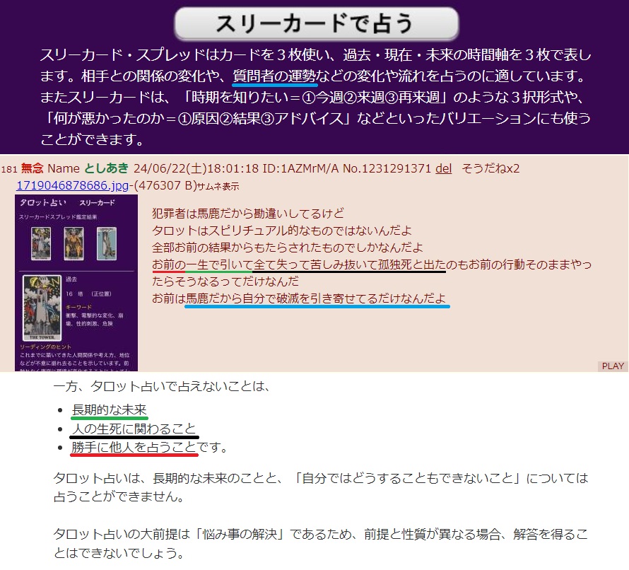 | … | 93無念Nameとしあき26/04/25(土)19:34:15No.1403344698そうだねx7この占いって毎回「もっと悪くなる」しか言ってなくね? |