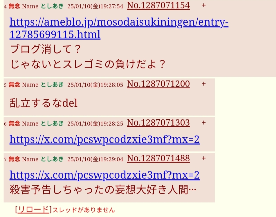 | … | 75無念Nameとしあき26/04/25(土)19:26:50No.1403342617+>盗んだ画像で分けわからんスレを毎日立てるキチガイデブほど狂ってるものはいないよ? |