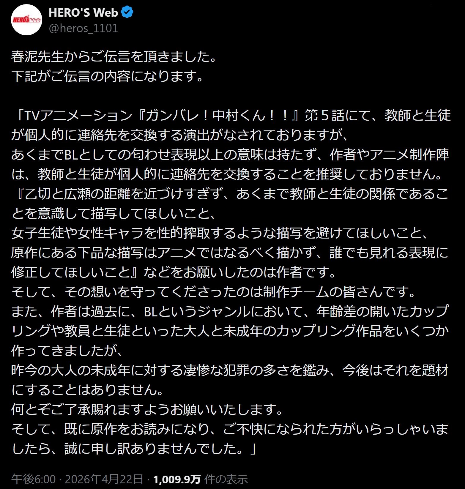 | … | 15無念Nameとしあき26/04/26(日)05:47:06No.1403445659そうだねx45 1777150026170.jpg-(85805 B) >海外から少年の性的搾取だって叩かれたから出したコメントが |