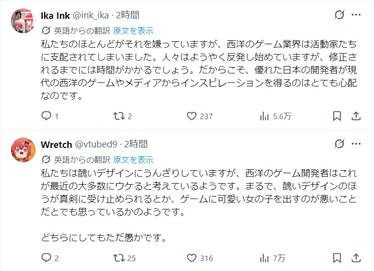 | … | 961無念Nameとしあき26/04/26(日)10:33:05No.1403483712+>それはそれとして海外で叩かれたしそれに対して女性キャラの性的搾取の話持ち出しながら折れるという奇行を行ったのでカオスなことになった |
