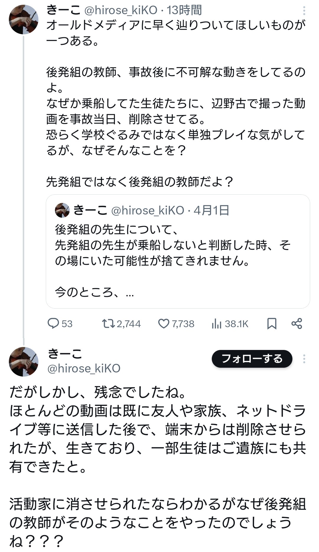 | … | 39無念Nameとしあき26/04/26(日)07:17:44No.1403450446そうだねx1>引率教員が居たら死ななかった可能性が結構上がる |