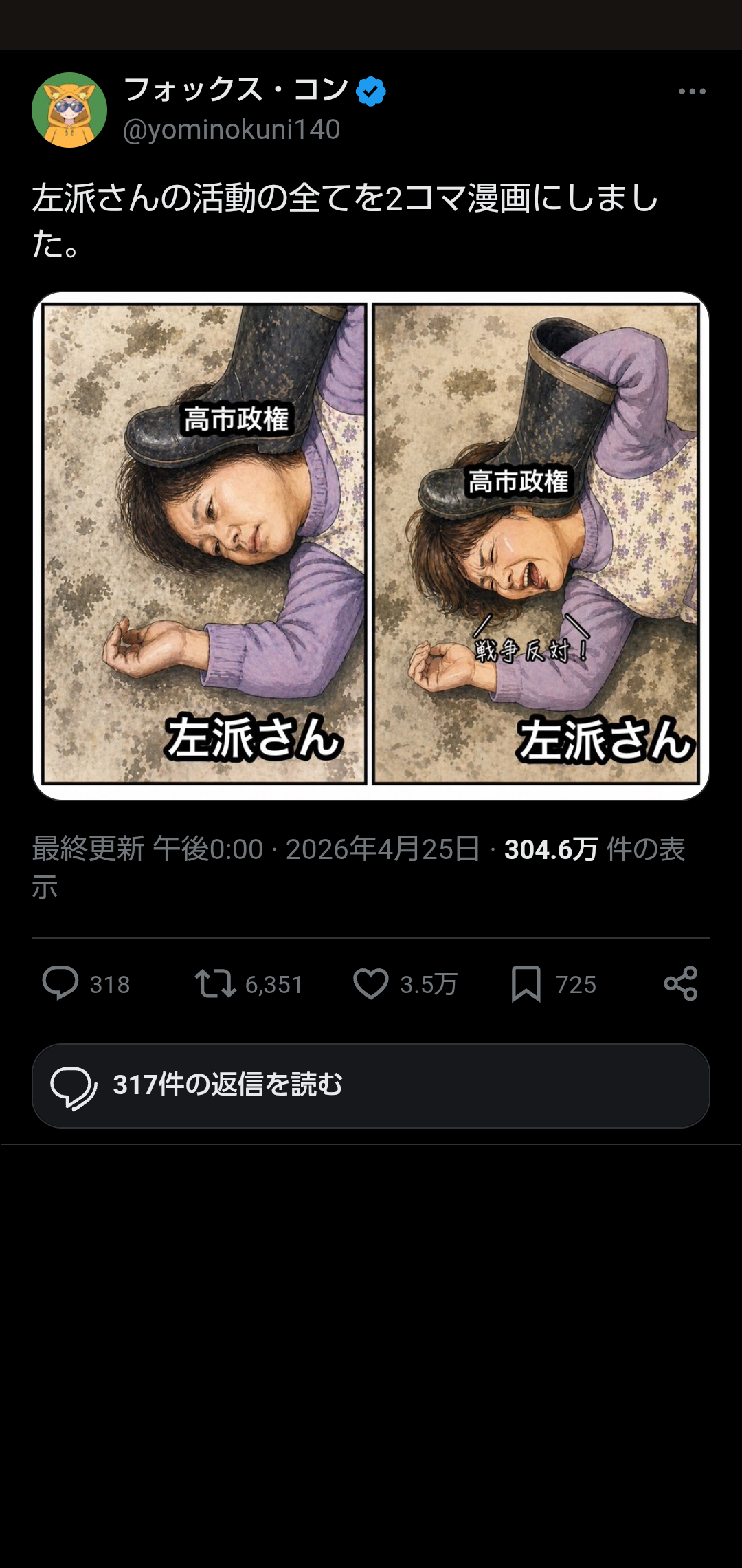 | … | 107無念Nameとしあき26/04/26(日)08:01:12No.1403454315そうだねx3>左翼こそが日頃批判してた |