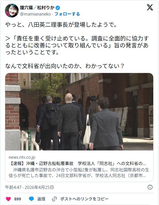 | … | 50無念Nameとしあき26/04/26(日)07:24:19No.1403450917+ 1777155859126.jpg-(155020 B) 学校関係者 再三出頭命令無視したから |