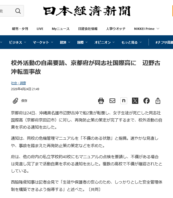 | … | 200無念Nameとしあき26/04/26(日)08:58:06No.1403464002+ 1777161486205.png-(64391 B) 辺野古沖転覆事故で京都府が同志社国際高に校外活動の自粛要請 |
