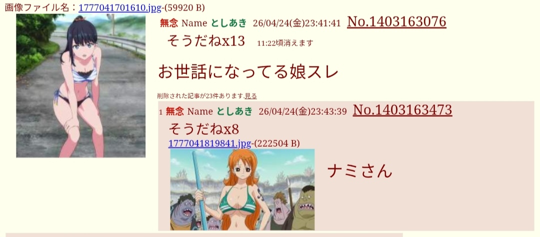 | … | 51無念Nameとしあき26/04/26(日)08:13:54No.1403455780+元々壺と違ってオタクが少ない掲示板だから |