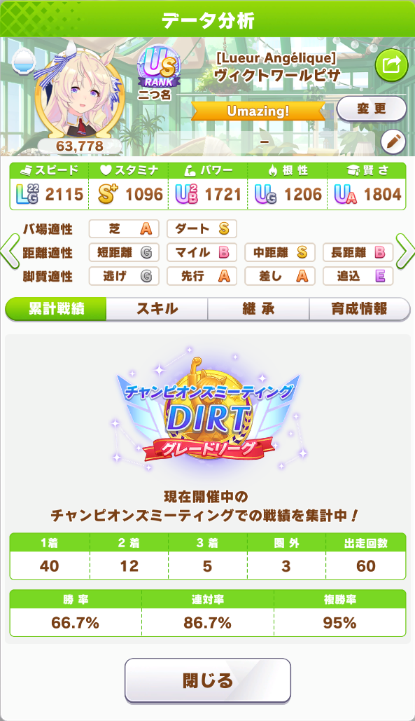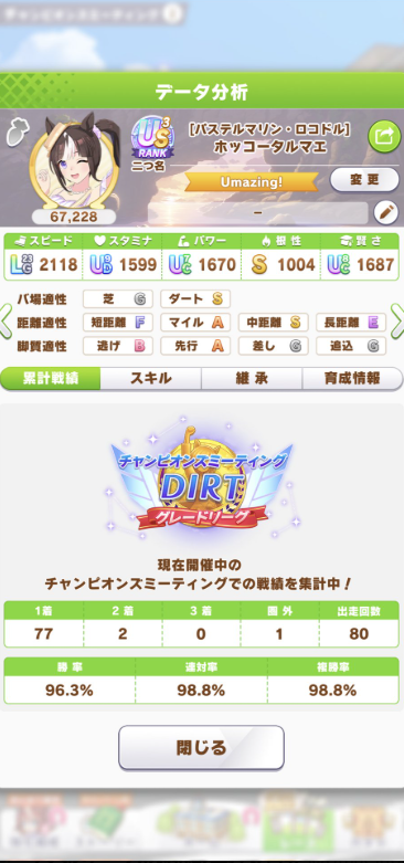 | … | 50無念Nameとしあき26/04/26(日)19:58:18No.1403616589+差ししかろくなサポカ持ってないからポッケ魔改造したけどそこそこ勝てたわ |