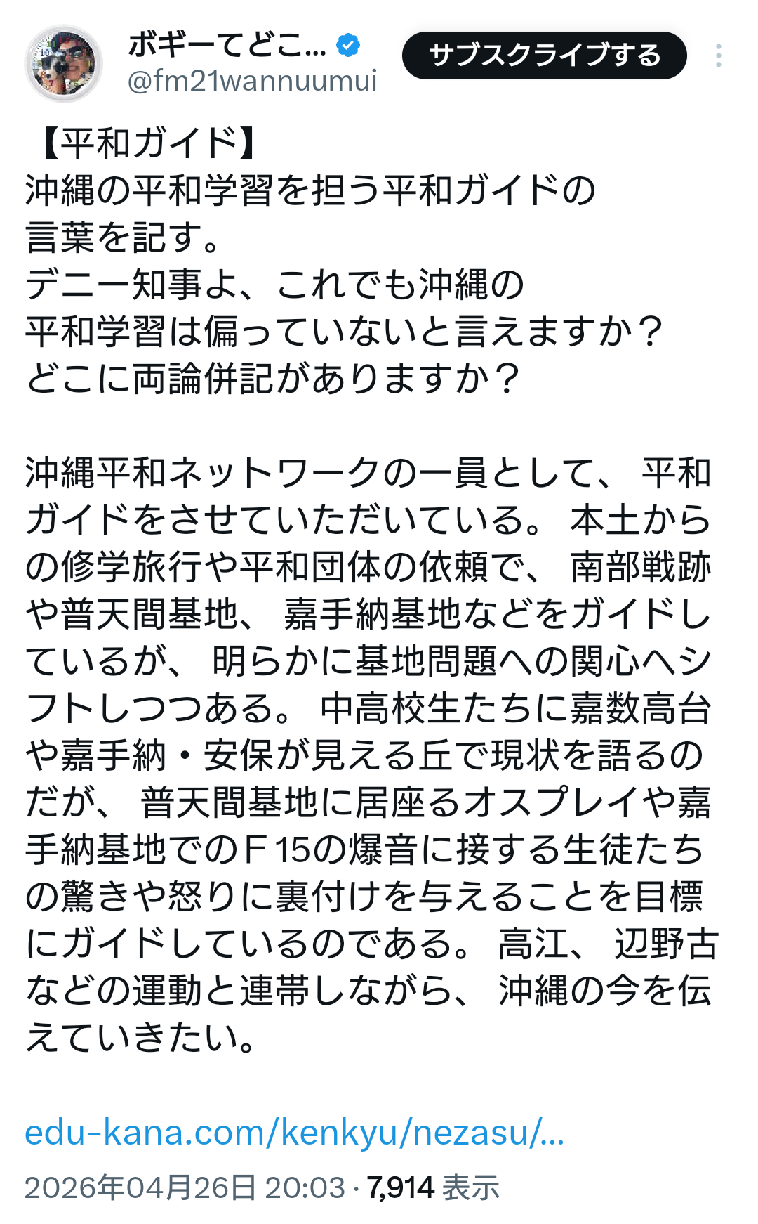 | … | 49無念Nameとしあき26/04/27(月)08:51:10No.1403721142そうだねx6>「沖縄が」「平和教育が」じゃねぇんだよ |