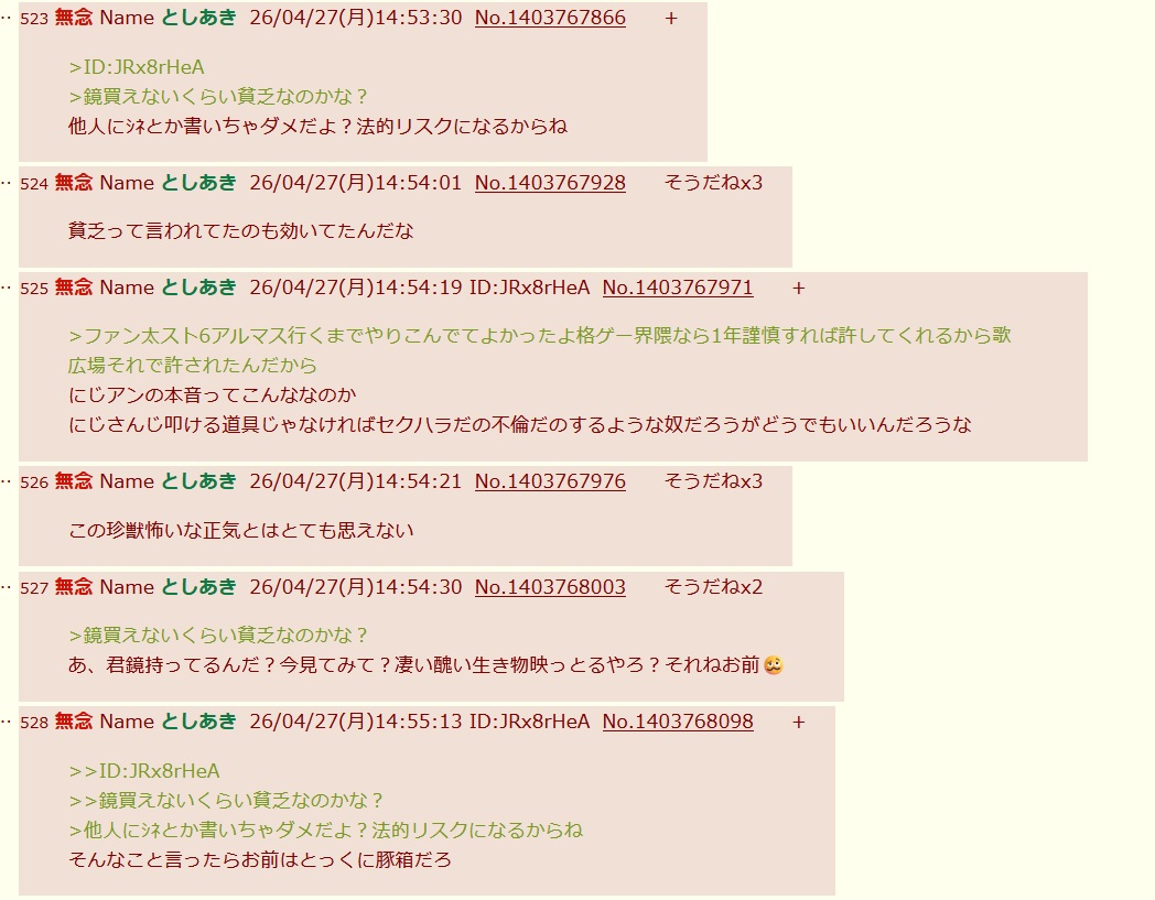 | … | 18無念Nameとしあき26/04/27(月)17:24:32 IP:49.109.*(spmode.ne.jp)No.1403790692+ 1777278272015.jpg-(74264 B) >ファン太の件をホロやぶいすぽに擦り付けようとする叶ママ |