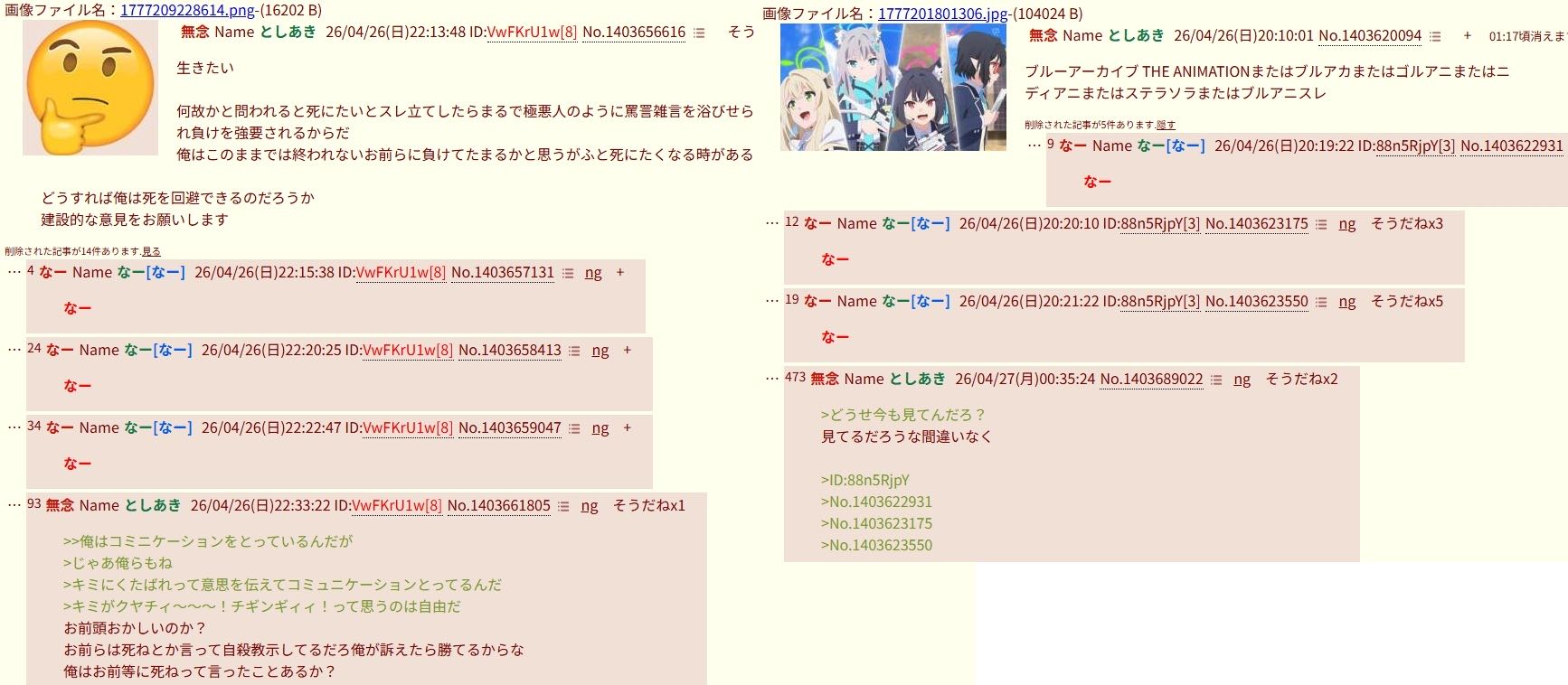 | … | 38無念Nameとしあき26/04/28(火)08:42:02No.1403922001そうだねx4>誰もスレ主の賛同者いないから安心して去っていいよ |
