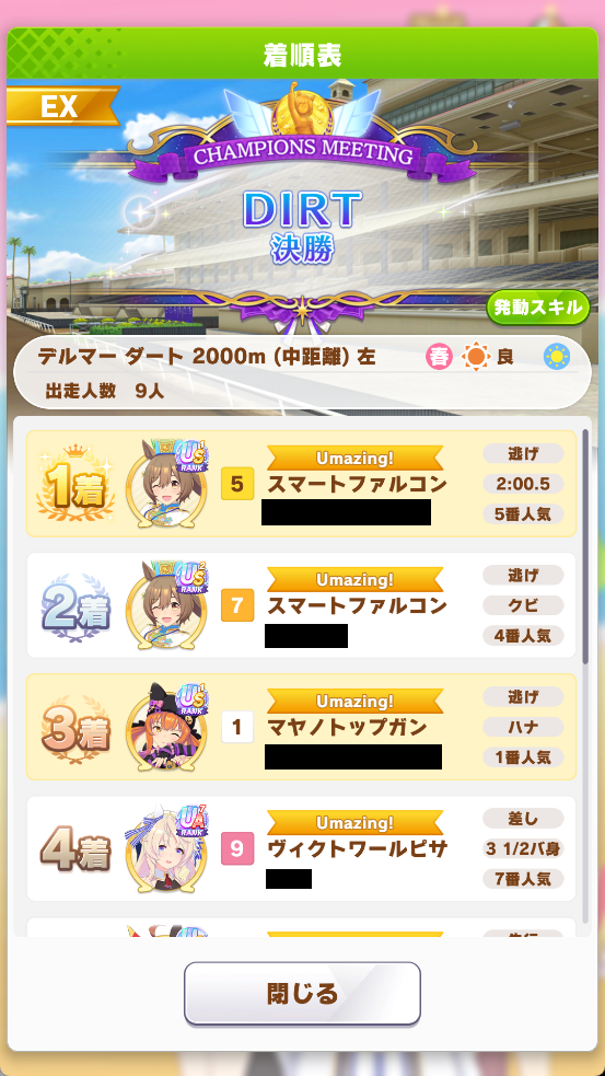 | … | 88無念Nameとしあき26/04/28(火)13:16:59 ID:MQ3YxP5kNo.1403958672+お相手の根性育成の逃げにスタデバフが効きましたわ |