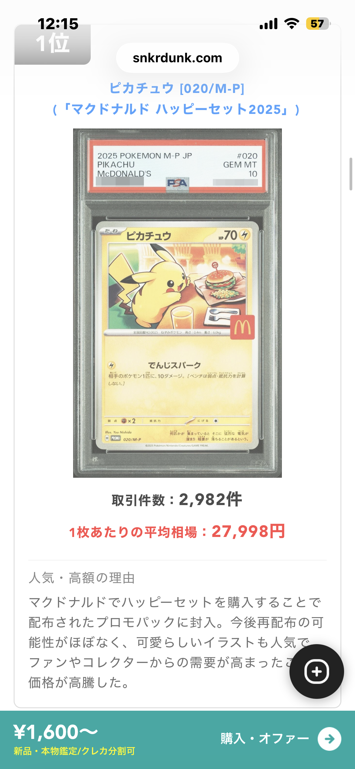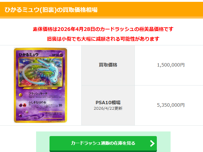 | … | 61無念Nameとしあき26/04/28(火)13:29:28No.1403960609+査定満額はPSA10とれるようなレベルの事指すからまぁまず無理だわな |