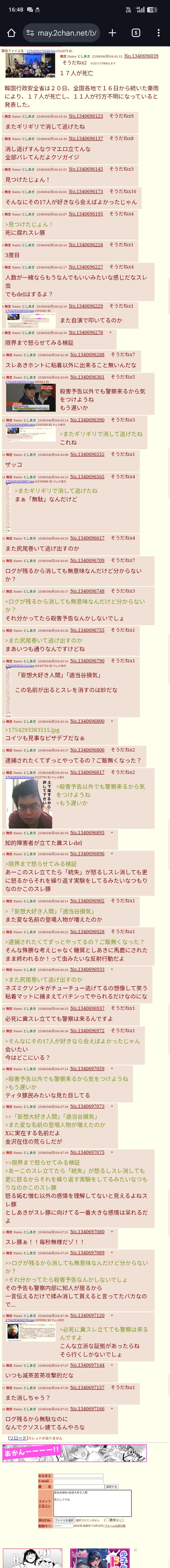 | … | 177無念Nameとしあき26/04/28(火)19:25:12No.1404021446そうだねx2>一時期お仲間が「18人以上いた!別室にもいた!女子もいた!」とか |
