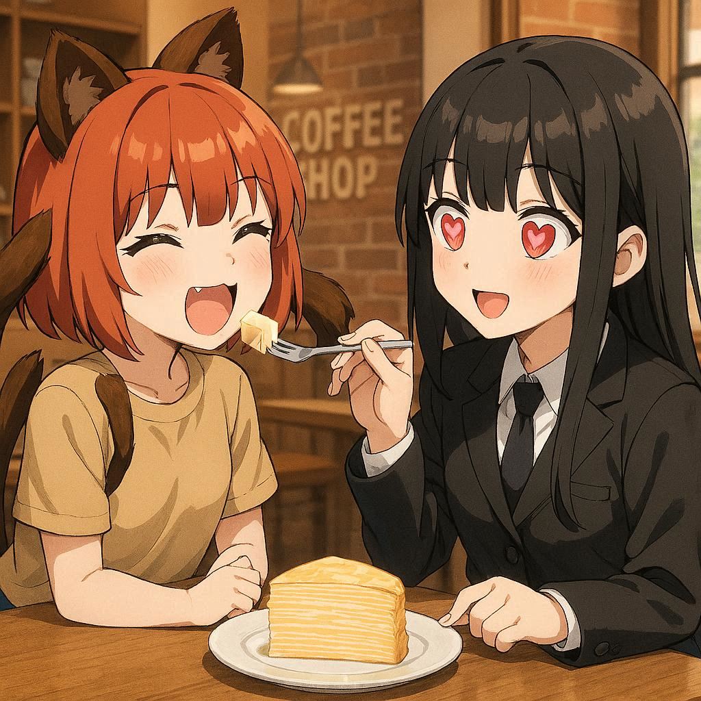 | … | 327無念Nameとしあき26/04/28(火)19:46:41No.1404026475そうだねx2 1777373201247.png-(1575500 B) >この画像のシチュを参照にわんだふるぷりきゅあの猫屋敷すみれと猫屋敷まゆでお願いします! |
