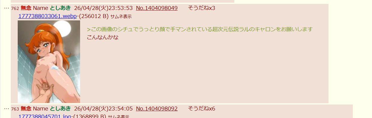 | … | 764無念Nameとしあき26/04/29(水)10:42:39No.1404156639+ 1777426959834.png-(2093587 B) >1000なら真夜中の睡姦祭り |