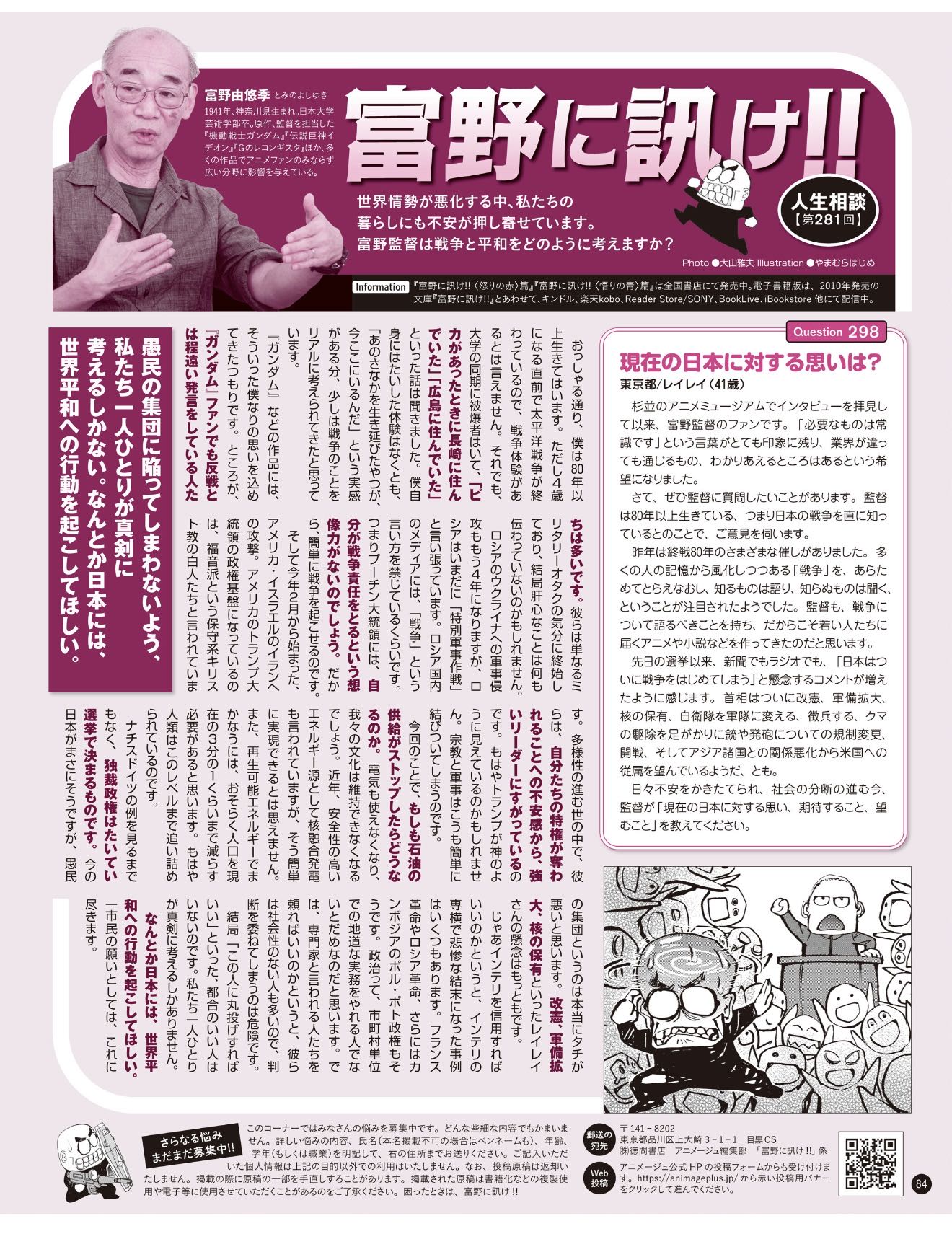 | … | 34無念Nameとしあき26/04/29(水)06:38:00No.1404127222+80歳の誕生日過ぎてるなら好きにさせろよ富野氏だろうが |