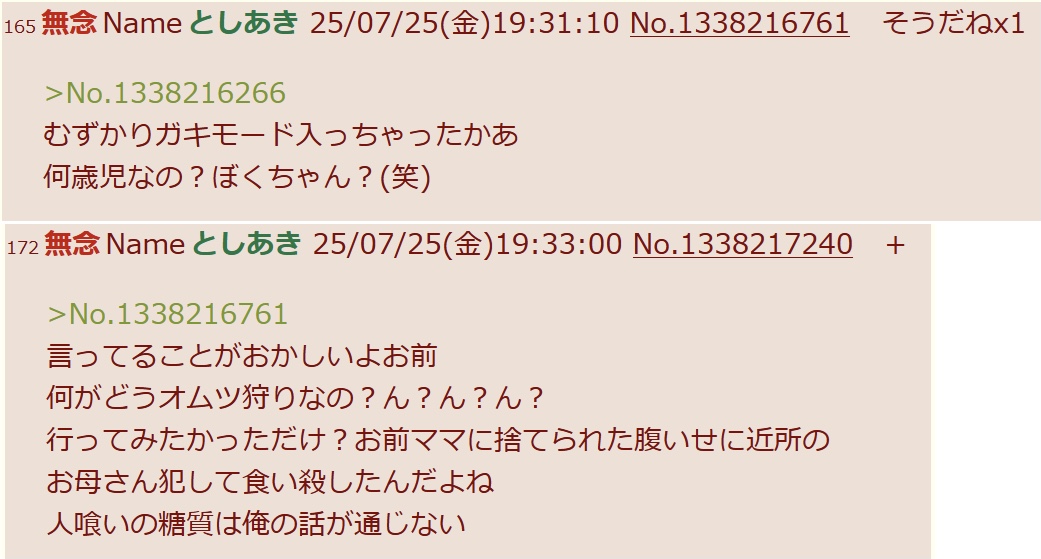 | … | 270無念Nameとしあき26/04/29(水)14:33:55No.1404202797+>まともに会話できないから荒らす |