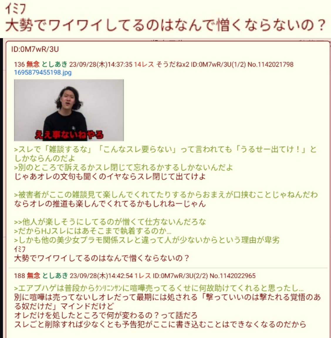 | … | 266無念Nameとしあき26/04/29(水)14:28:22No.1404201604+ 1777440502852.png-(1014087 B) >そもそも他人が楽しくしてるのにイラついてる下衆ですし |