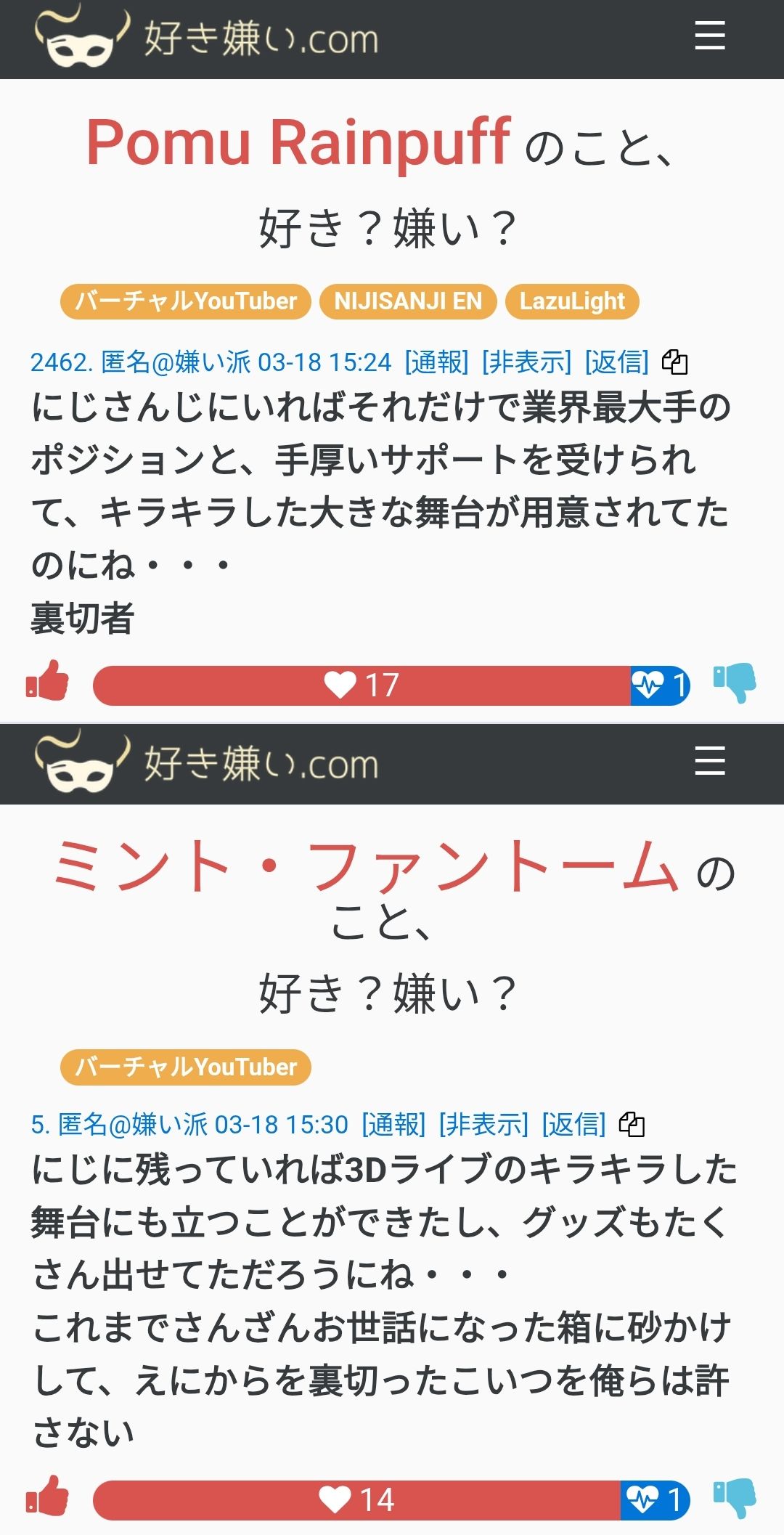 | … | 211無念Nameとしあき26/04/29(水)20:21:30No.1404282283そうだねx4マリアはにじさんじも叩いてるからにじリスじゃ無い言うならマリア擁護する理由無いのに怒る人ほんとなんなの |