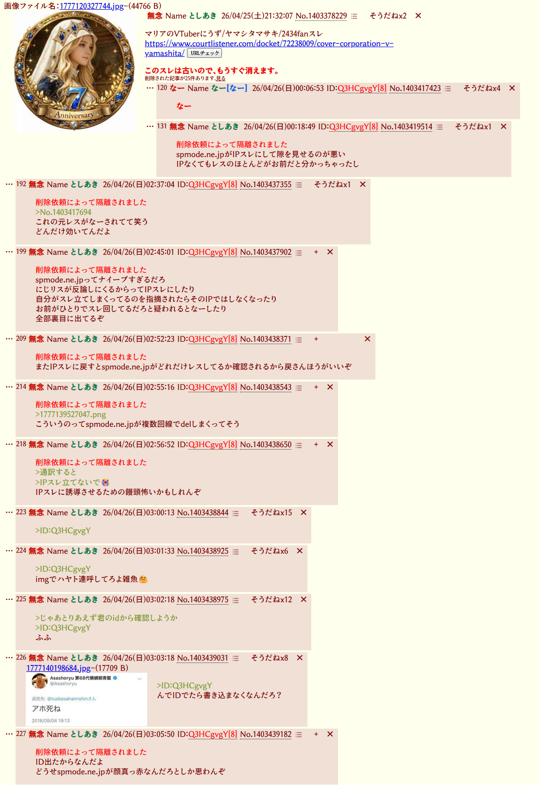 | … | 231無念Nameとしあき26/04/29(水)20:26:03No.1404283502+ 1777461963426.jpg-(121781 B) >またにじに何かあったか |
