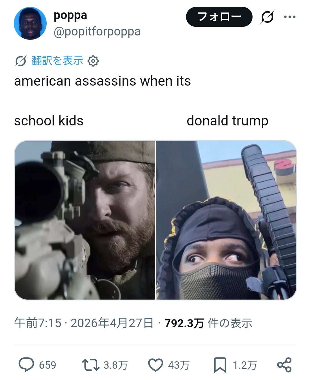 | … | 7無念Nameとしあき26/04/29(水)19:28:42No.1404267044+そういや左の「アメリカン・スナイパー」は |