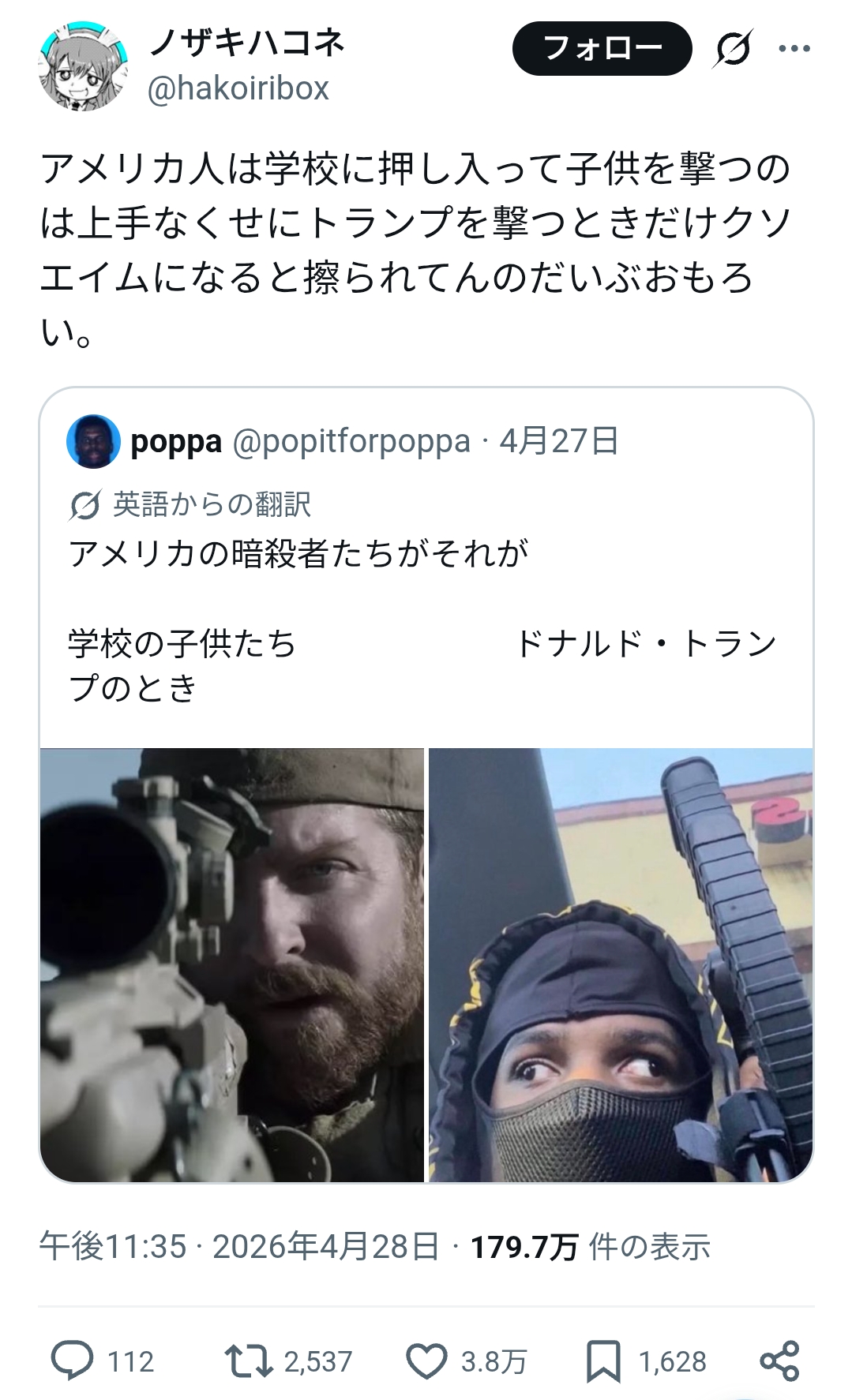 | … | 5無念Nameとしあき26/04/29(水)19:26:29No.1404266383+左はアメリカの暗殺者じゃなくてただの同級生だよ |