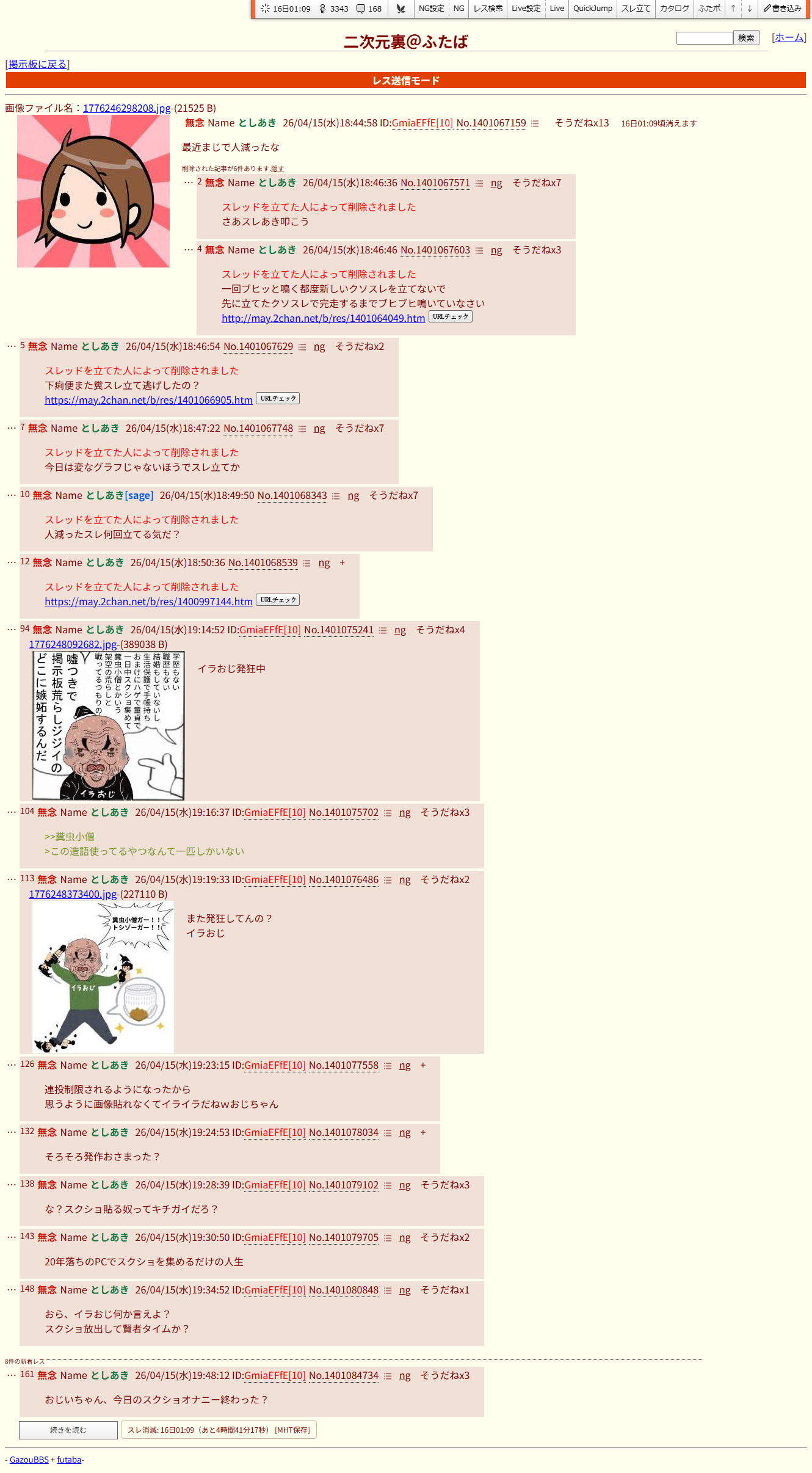 | … | 6無念Nameとしあき26/04/29(水)20:07:08No.1404278193+ガチの人とクソガキが混じってきてるというか普通のじじいはエロだけ拾って静かにしてるわ |
