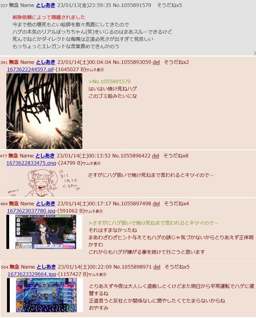 | … | 82無念Nameとしあき26/04/29(水)22:24:22No.1404317667そうだねx4何がぷにまんあきだよアイツ放火予告犯だろ? |