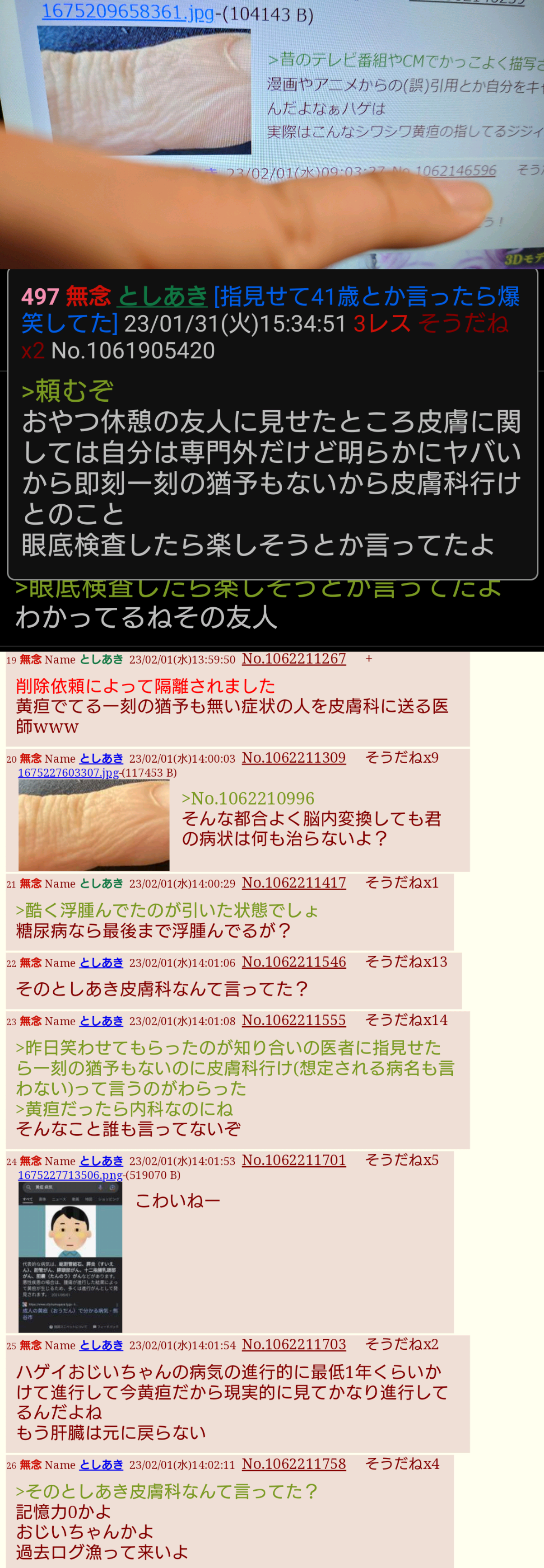 | … | 40無念Nameとしあき26/04/29(水)21:30:12No.1404302723そうだねx11 1777465812154.jpg-(46589 B) >二次裏に顔晒す時点で知的障害だよなあ |