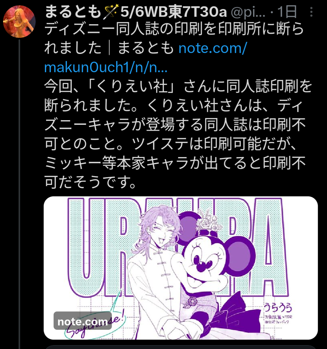 ミッキーの同人誌を作ろうとした同人作家、印刷所に拒否されて怒りの投稿