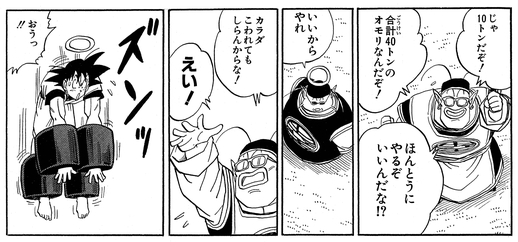 | … | 77無念Nameとしあき26/04/30(木)23:30:48No.1404561395+ 1777559448271.jpg-(93032 B) 戦闘力3百万軽く超えてる通常時の悟空がおもりを付けると舞空術の時に動きにくくなる重さ |