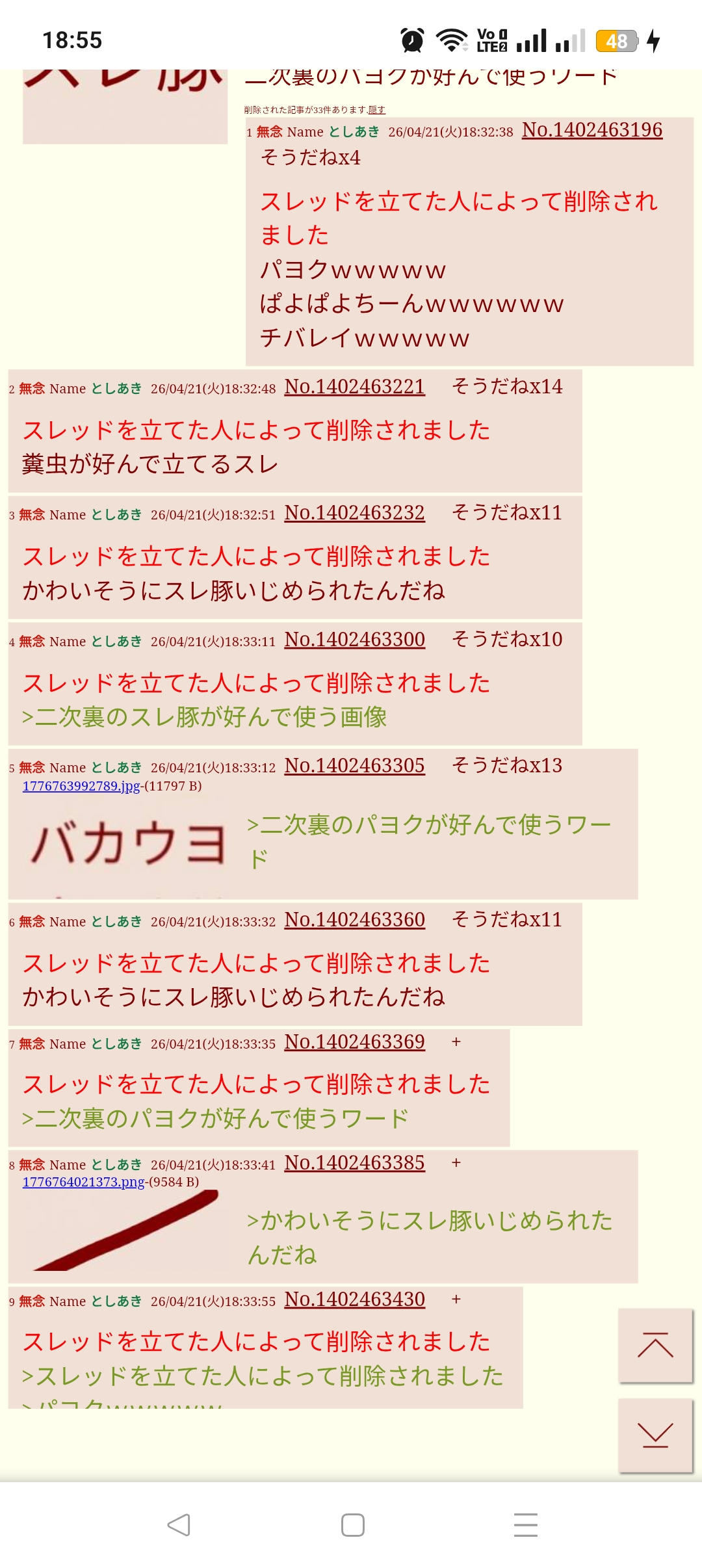| … | 3無念Nameとしあき26/04/30(木)22:53:31No.1404553276そうだねx1一回ブヒッと鳴く都度新しいクソスレを立てないで |